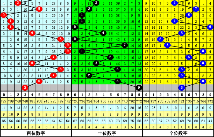 个位:其下期奖号该位2路出现比例稀奇高,共有4次,本期看好该位2路号码连接热出,参考号码5。
