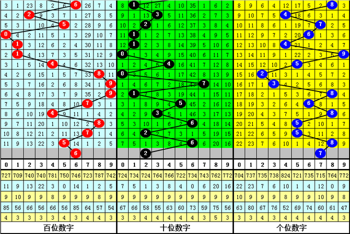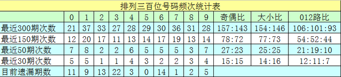 百位号码:前50期走势活跃的号码为:1开出8个,0、9开出7个;走势最冷的号码为:2、3开出2个,8开出3个。奖号012路比开出21:19:10,奇偶比开出27:23。本期百位杀摒除:2、4,自若号码5、6、9,胆码参考6。