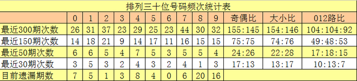 个位号码:前50期走势最活跃的号码为:7开出9个,5开出7个,4、8开出6个;走势最冷的号码为:1开出2个,0、9开出3个。个位号码大小比开出29:21,奇偶比开出26:24。本期个位摒除两码:8、9,存眷号码1、3、7,胆码参考7。