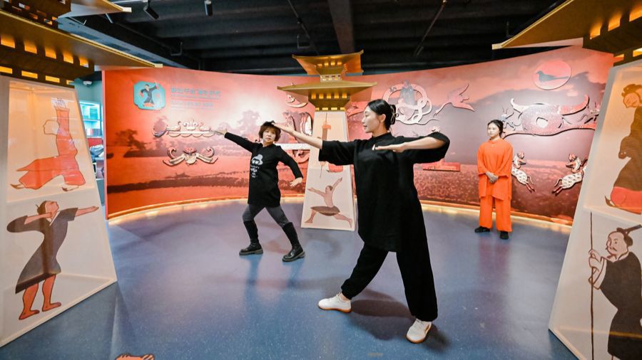 庆典以马王堆诱掖术扮演开篇:上海体育大学学子身着从简汉服登台,舒展肢体精确复刻《诱掖图》中“鹞鹰展翅”“熊经鸟伸”“龙登”等经典手脚,刚柔并济的韵律将两千年前的养生逻辑具象化,为行动定下天真基调。