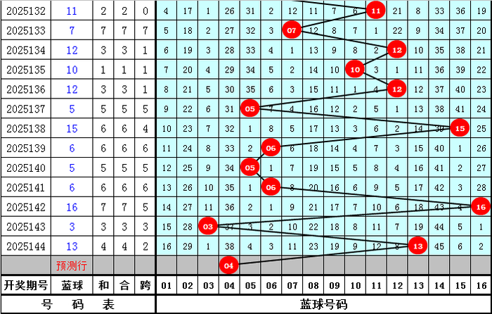蓝球分析:上期蓝球为大号13,最近10期大小蓝球号码远隔出现5次,走势相等,本期看好小 号蓝球,参考蓝球04。