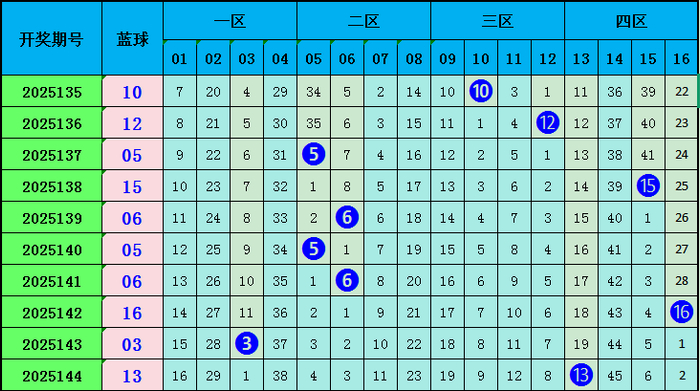 上期蓝球开出号码13,近十期开出蓝球在一区1个,二区4个,三区2个,四区3个,二区走势热,一区走势较冷,本期预测蓝球出当今三区,要点关切号码:11。