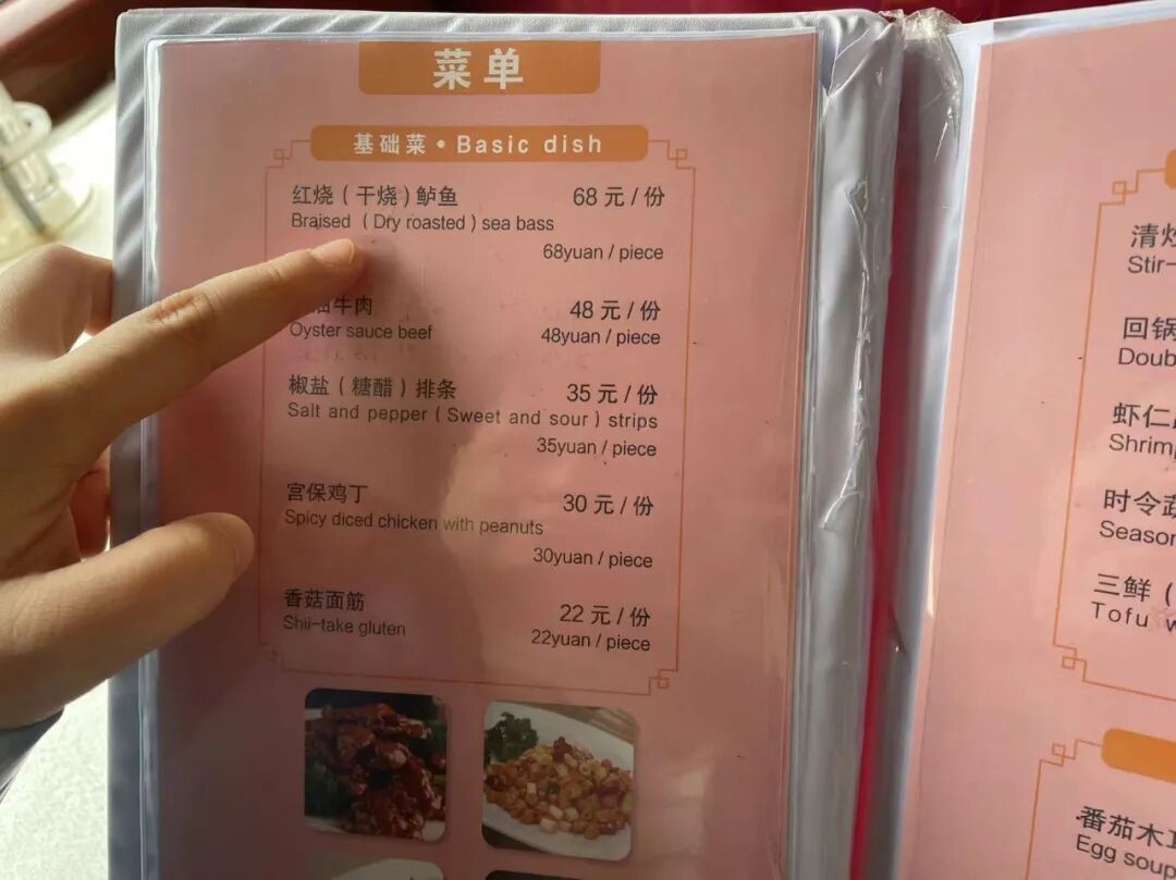 如今简便的菜单也依然是中英文对照。
