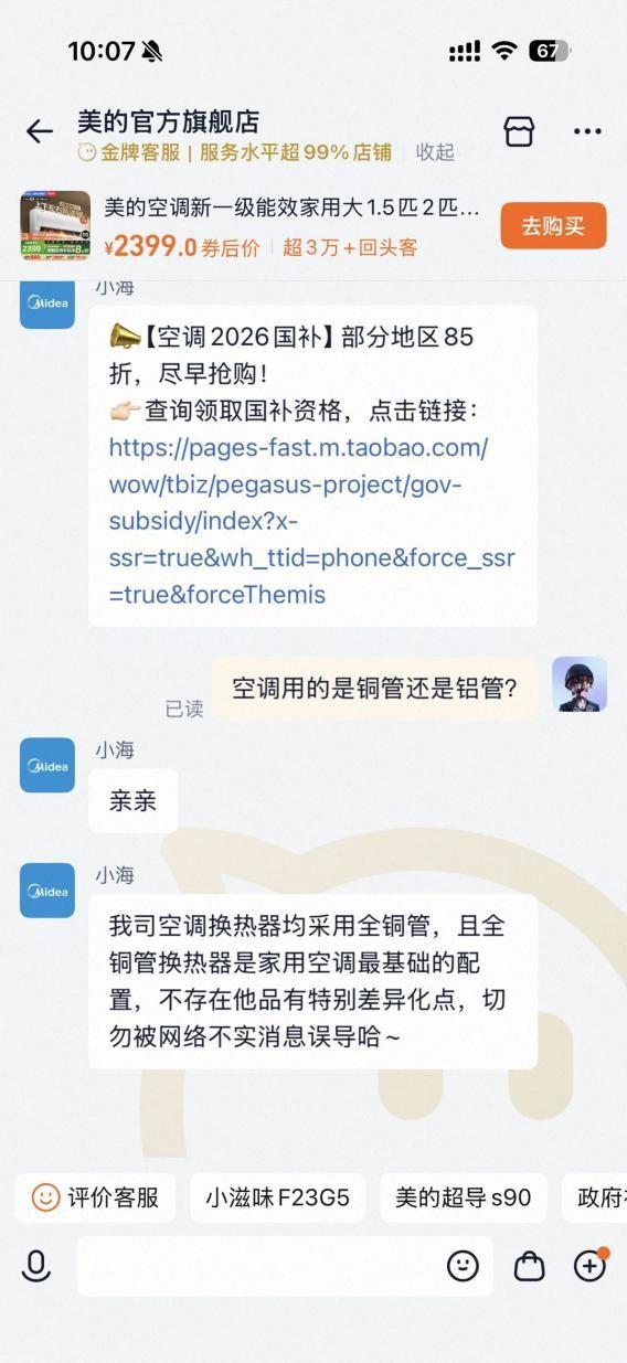 从多位破钞者与好意思的空调官方客服的调换纪录来看,针对“是否使用新材料”“是否引入新材料替代有打算”等问题,客服回复口径一致,明确示意沿途选拔全铜管,并教导破钞者不要被收罗乌有信息误导。