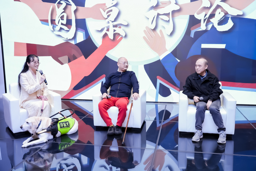 “科技织梦,有爱无碍——2025科技无破损影视主题活动”上,韩颖(左一)参加圆桌漫谈。受访者供图