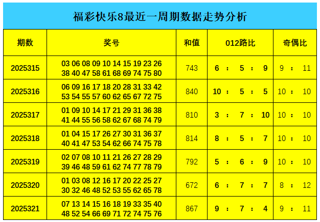 和值走势分析:上期和值为867,对比前期高涨195个点位,最近一周奖号和值平均值为791.1,近一周和值范畴在672--867之间,本期保举奖号和值较上期走势波动下落,瞻望红球和值在810--829之间