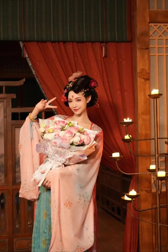 恰似第二单位的舞阳,其形象宛如娇柔花朵,尽显柔弱可人之态,于众扮装中别具一番婉约风情。淡颜系好意思女果然也能hold住大唐妆造,跟两位女主同框都不输阵。