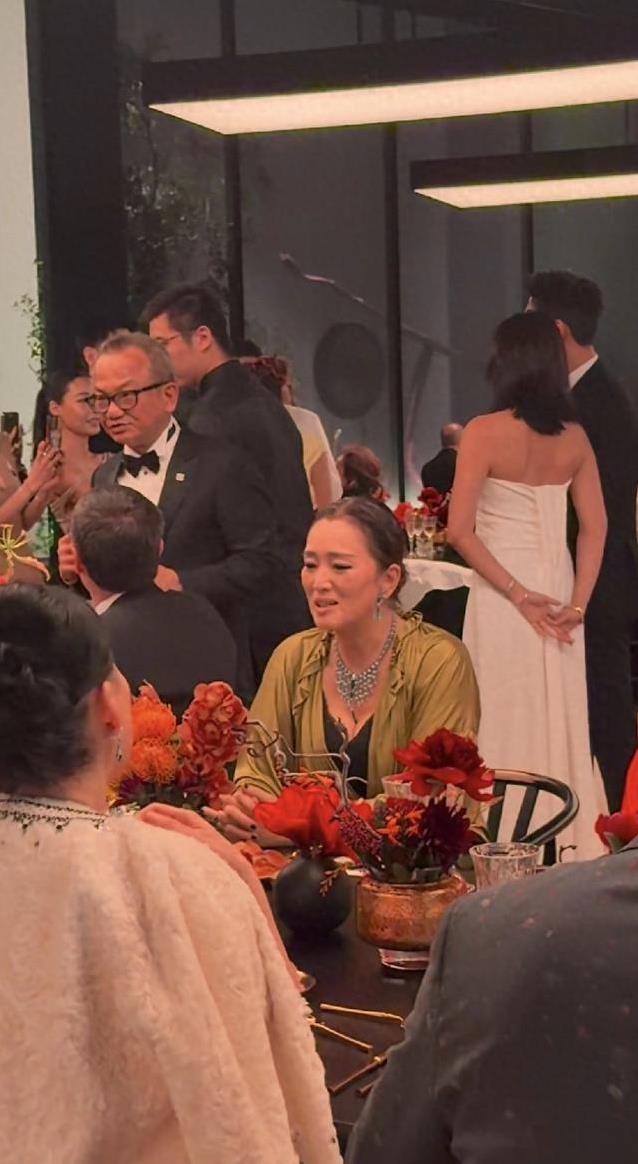手脚是国际品牌年度盛典,来的有影视圈大咖,还有体育界名东说念主。巩俐走红毯,裙摆拖地,步子稳稳的。发型依然老方法,底盘发露额头,下巴线条紧实。妆容轮廓,肉体保握好,深V领口显出好皮肤。银发虽少,却藏不住,闪光灯一打,头顶发缝赫然。