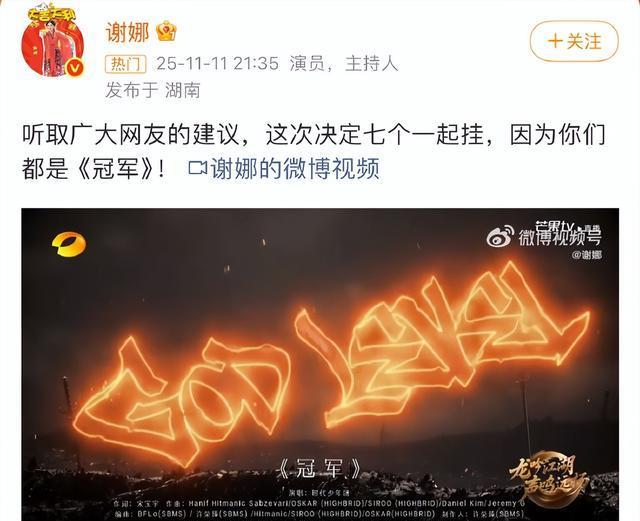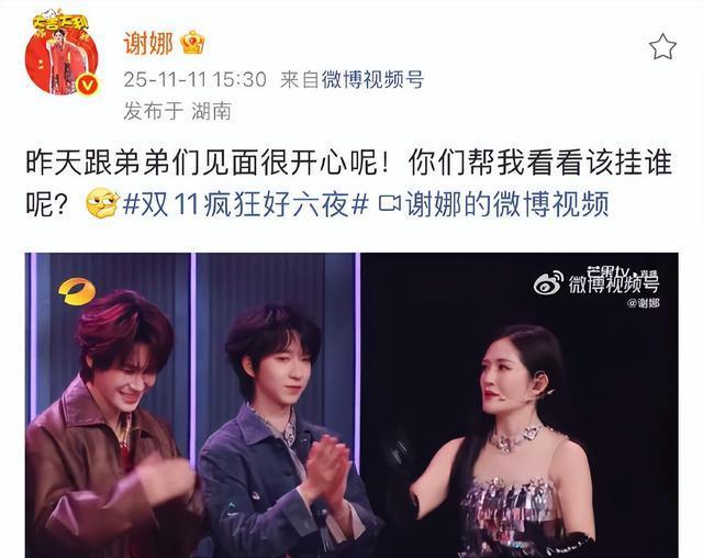 内娱“好意思瞻念网络剧”又更新了!2025年11月10日湖南卫视双11晚会上,谢娜一句“描写不好微博见”,把期间少年团七个东谈主吓得“输攻墨守”;适度11月11日她径直官宣“七个所有挂”,驳斥区笑到瘫痪——这波“记仇”,何如越看越像宠?