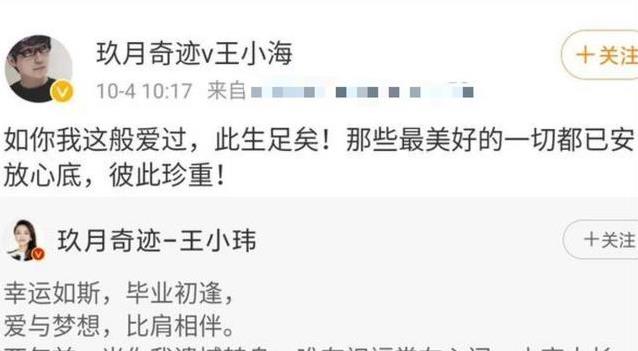 仳离在2020年10月4日官宣,王小海发微博说爱过就够了,王小玮回两年前就回身只剩祝贺。网友算算,成婚只两年就散了。官宣前,2018年临了一次春晚后,组合再没上央视。仳离后,组合当然驱散,两东谈主路分开走。王小玮陆续音乐路,王小海基本退出公众眼。