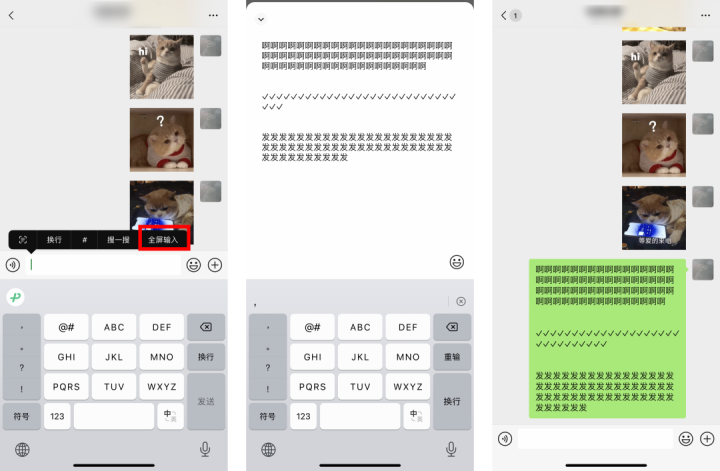 长按聊天框,在弹出的选项中滑到最右侧,就能礼聘“全屏输入”,掀开想路。